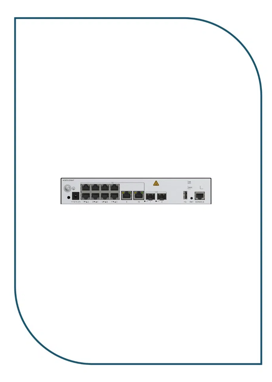 The AC650-256AP is a small-capacity box wireless access controller (WAC) for small office home office (SOHO) enterprises. It can manage up to 256 access points (APs) and integrates the GE Ethernet switch function, achieving integrated access for wired and wireless users. Also, the AC650-256AP features high scalability and offers users considerable flexibility in configuring the number of managed APs. With these strengths, this WAC can be used to construct small and medium campus networks, enterprise office networks, wireless metropolitan area networks (MANs), and hotspot coverage networks.