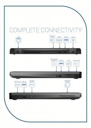 | Ports | 3 x USB 3.1 Gen 1 (one with PowerShare), 1 x USB Type-C with DisplayPort, HDMI 1.4, VGA, RJ-45 Ethernet, SD card reader, optional Smart Card Reader |