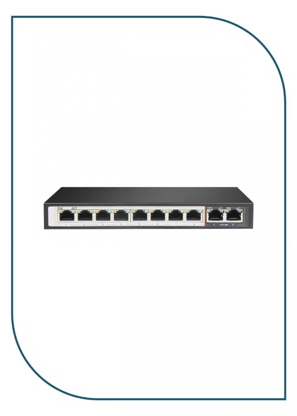 The D-Link DGS-F1010P-E 8 Port Switch with 10/100/1000Mbps and 2 GE Ports enables you to connect Power over Ethernet (PoE) devices such as wireless access points (APs), IP cameras, and IP phones to the network. The DGSF1010P-E can also connect to other Ethernet devices like computers, printers and a Network Attached Storage (NAS) to fit into any type of network application.