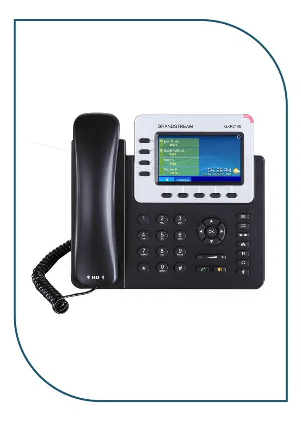 The customizable GXP2140 brings a rich and vibrant display, and call control to the medium to high-volume call user. This device provides the perfect balance for the call-intensive user’s desktop, with its 4 lines, 5 programmable soft keys and feature-loaded call controls. Its 4.3” color LCD display creates a high-quality user experience, and its dual Gigabit PoE ports, HD audio, and integrated Bluetooth makes the GXP2140 highly versatile as well.