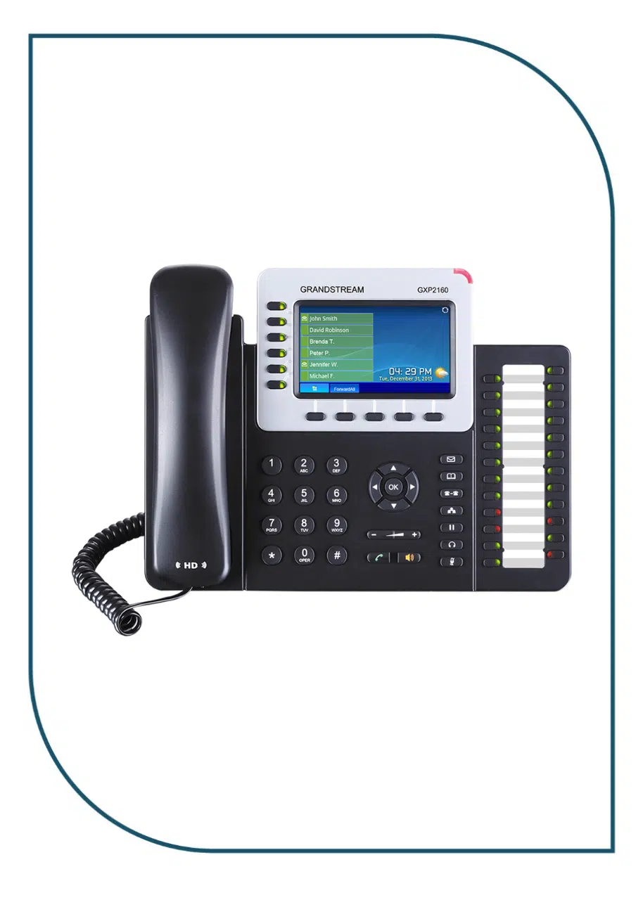 The GXP2160 provides an efficiency-focused endpoint with its vibrant display and intuitive BLF and speed-dial keys. Focus on handling more calls and reaching more customers by utilizing its 6 lines, 4.3” LCD screen and built-on physical 24 BLF/speed-dial keys. Easily monitor presence and status of other extensions to quickly transfer calls to the right destination. Equipped with dual Gigabit, PoE network ports, Bluetooth support, and a host of other features it brings call control to a new level.