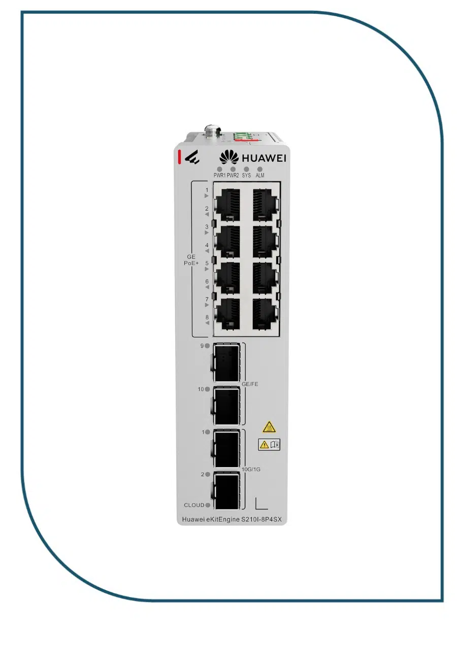 The HUAWEI eKitEngine S210I-8P4SX is an industrial network switch built for reliable connectivity in automation, surveillance, transportation, and smart-infrastructure environments. Designed with ruggedness and operational continuity in mind, this switch can handle extreme temperatures and provides power to connected devices via PoE+ ports.