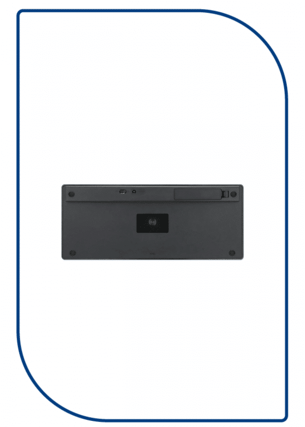 Its compact form is ideal for small workspaces and to give you more room for your mouse. The built-in storage on the back for batteries and the USB receiver keeps the keyboard tilted for maximum typing comfort. Also mounted on the back are four rubber feet to prevent slipping and to protect your desk from scratches.