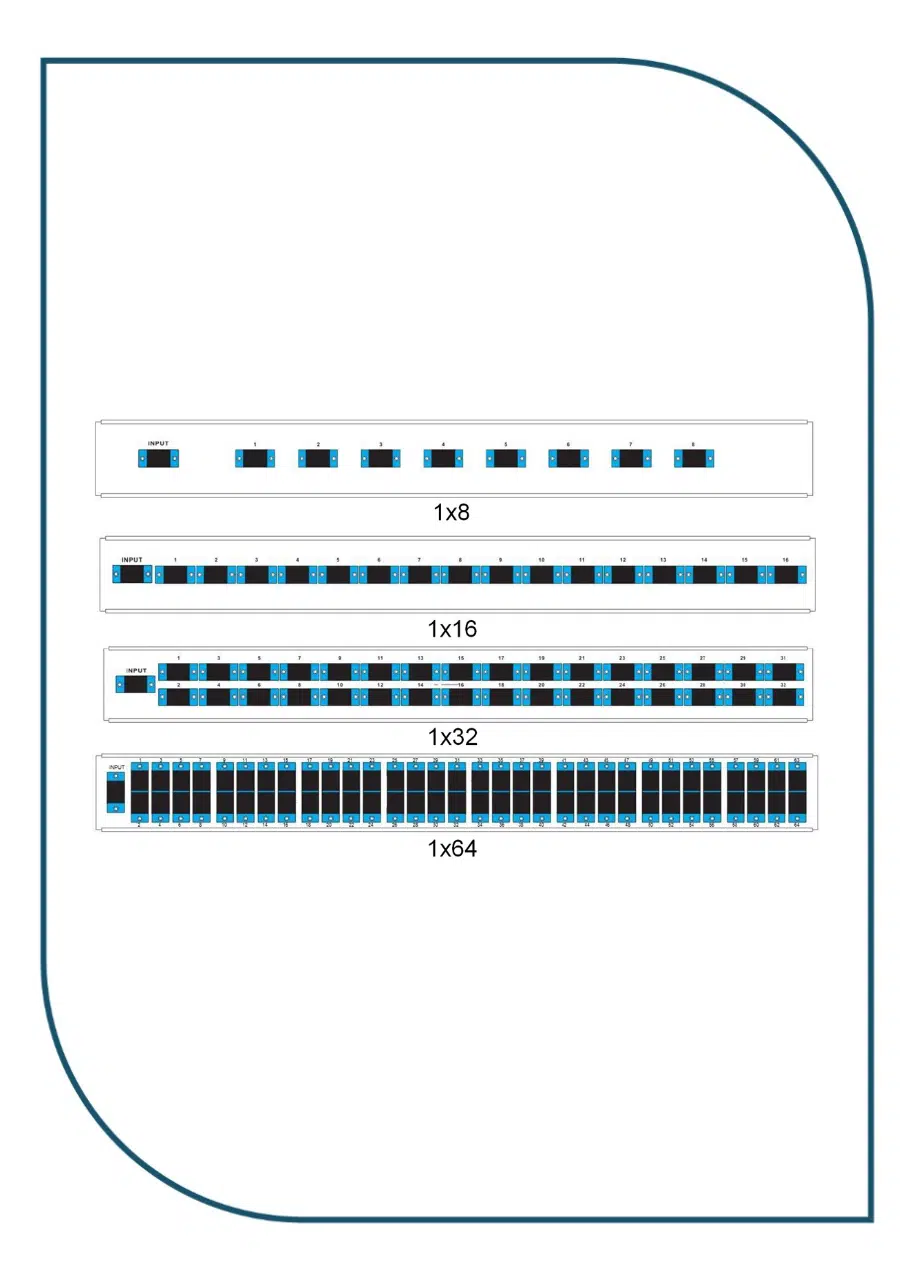 Fiber optic PLC splitter is an optical power device based on quartz plate planar of light wave technology, which is widely used in local side or termination of Passive Optical Network (EPON, BPON, GPON etc.) for splitting of optical signal. It offers superior optical performance, high stability and high reliability; meet various application requirements in different environments.