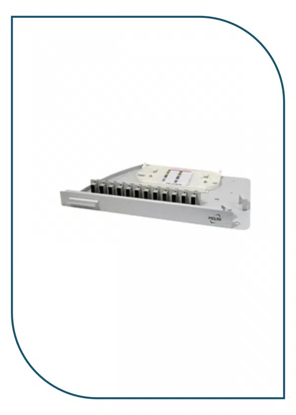 It is made of a 1U 19” cold-roll steel box, with a plastic splice Tray inside, suitable for pigtail, ribbon, and bunch cable distribution. And it has metal sliding fittings with self-locking functions to prevent the drawer from falling when moved.ProLink Fiber Distribution Frame, 24 Core swing 12 SC Duplex – Empty.