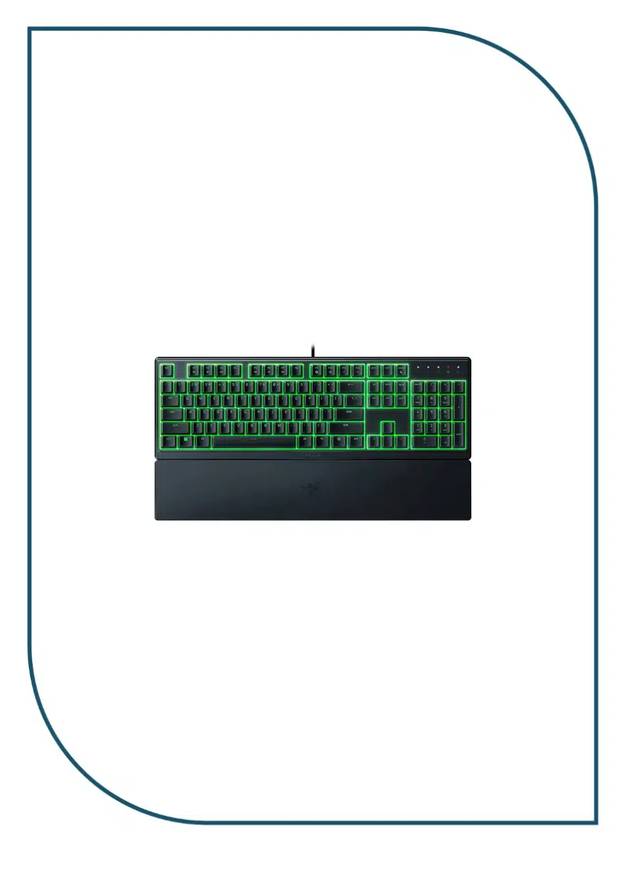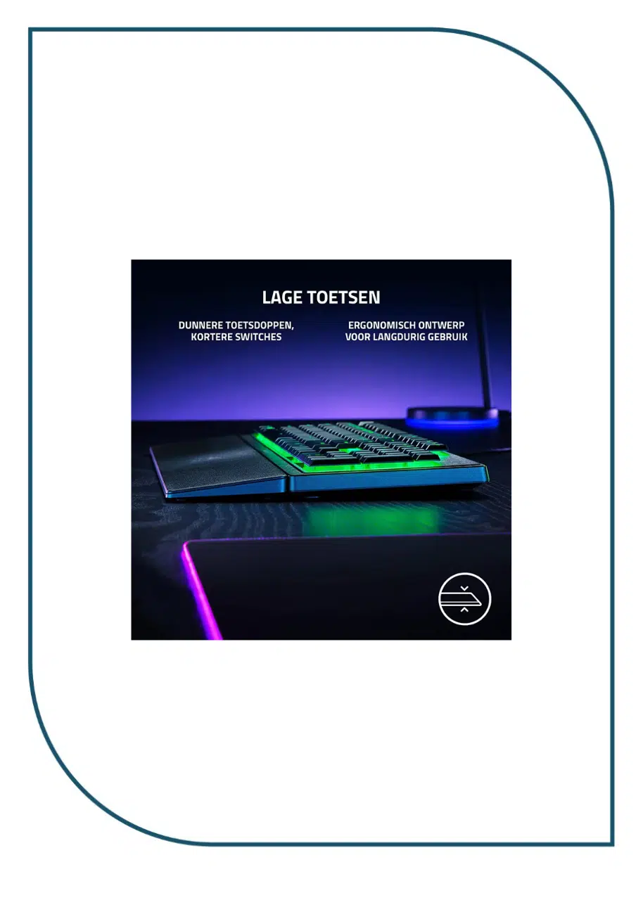 It features mecha-membrane switches for comfortable typing, Razer Chroma RGB lighting, and UV-coated keycaps for durability.